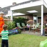In de zomervakantie is ome René ook altijd jarig en dus zijn we met z’n allen naar Bergambacht gegaan om dit te vieren. Het was erg warm en dus mochten Lucas en Roan in de achtertuin lekker met water spelen. Ook hebben ome René en tante Marijke een heel leuk spel met een olifant en vlindertjes en netjes om de vlindertjes te vangen. Of op je hoofd te zetten…