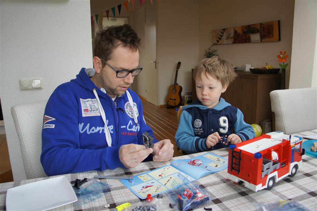 Vandaag is Lucas jarig! Omdat het vandaag Pasen is, vierden we het gisteren. Lucas was al een tijdje bezig met bedenken wat hij allemaal ging vragen voor zijn verjaardag. We hadden er een mooie collage van gemaakt. Gisteren was het dan zo ver. Na een week aftellen heel erg benieuwd wat hij allemaal zou krijgen. ’s Morgen lag er een grote doos op tafel bij Lucas zijn stoel. Gelijk uitpakken natuurlijk en kijken wat er inzit. Een brandweerauto van Playmobile van papa en mama. Deze stond niet op het lijstje, maar Lucas er gelukkig wel heer erg blij mee. Samen met papa hebben we de brandweerauto in elkaar gepuzzeld.