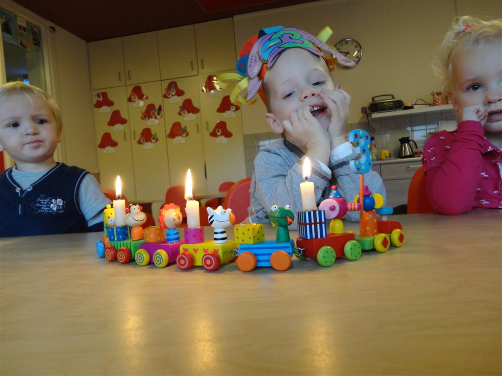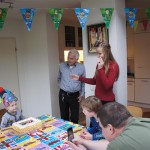 We hadden de hele dag bezoek en iedereen nam een mooi cadeautje mee. Ook waren er veel kindjes die taart kwamen eten en lekker kwamen spelen. Zo waren er Julia, Isabelle, Marit, Stan, Tijn, Jasper en Merijn. ’s Middags kwamen ook opa Francois en oma Maria op gezoek, en ook nog Ome René en Tante Marijke. Die bleven ’s avonds ook eten. Zoals vaak na een verjaardag halen we lekker (makkelijk) Chinees voor iedereen. Het was een drukke maar leuke dag.
