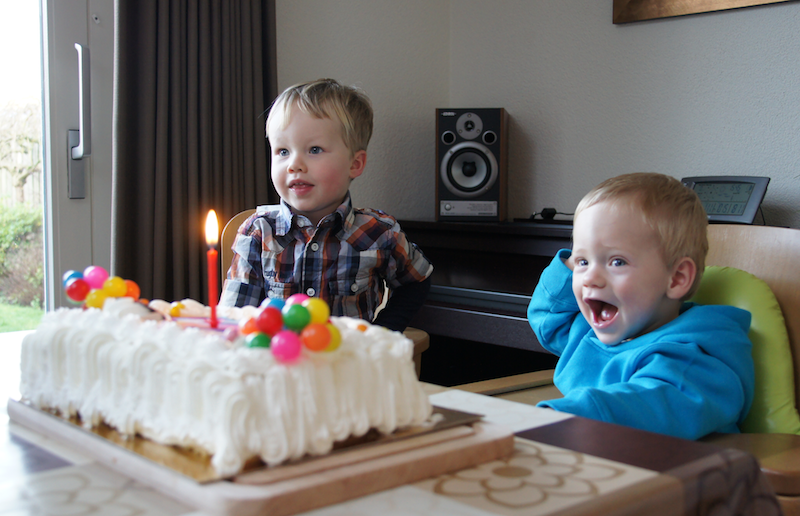 Hieperdepiep Hoera! Vandaag is Roan 1 jaar geworden! Terugkijkend naar de foto’s van precies 1 jaar geleden, lijkt alles veel langer geleden dan nog maar 1 jaar. Van een hulpeloos babytje is Roan nu een echte peuter aan het worden. Papa en mama waren allebei vrij vandaag en alle opa’s en oma’s zijn langsgeweest. Opa Ries en oma Carla vanmorgen al bij de eerste cadeau-ronde, en opa Francois en oma Maria waren er rond de middag met een echte teletubbietaart! Van papa en mama heeft Roan een echte Cars auto gekregen om mee door de woonkamer te scheuren samen met Lucas, die nog steeds op zijn Pooh auto rond crosst! Het was een gezellige dag. Zondag is het nog eens feest. Voor de 3e keer eigenlijk, want donderdag hebben ze bij Kiekeboe ook al Roan’s verjaardag gevierd. Wat een verwennerij! Roan heeft inmiddels wel door dat een verjaardag iets heel bijzonders is!