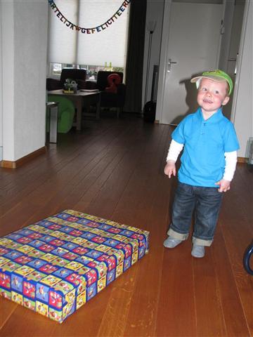 Gisteren vierden we Lucas’ 2e verjaardag. Wat was Lucas onder de indruk van de slingers en ballonnen in de woonkamer. Er lag een héél groot cadeautje in de woonkamer te wachten op Lucas. Een mooie Duplo trein! ’s Middags kwamen alle opa’s en oma’s, ome René en alle vriendjes en vriendinnetjes van Lucas met hun papa’s en mama’s. Even een opsomming: Marit, Julia, Jasper, Merijn, Tijn, Stan, Guus, Sjors, Ardy en Lydia. Zo veel cadeautjes had Lucas nog nooit gehad op 1 dag! Wat een feest.