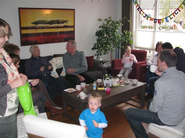 Gisteren was opa François jarig. Hij werd 65 jaar! Dat is een hele speciale leeftijd om te vieren. Oma had vorig week ook haar laatste werkdag in het ziekenhuis, dus opa en oma kunnen nu volop van hun pensioen genieten! Natuurlijk hoorde daar een feestje bij gisteren met alle vrienden en familie van opa en oma. Lucas en Roan vonden het ook heel leuk en hebben zich prima vermaakt. Lucas heeft lekker gespeeld met vriendje Max, terwijl Roan lekker bij iedereen op schoot gezeten heeft. Het was een drukke maar leuke dag!