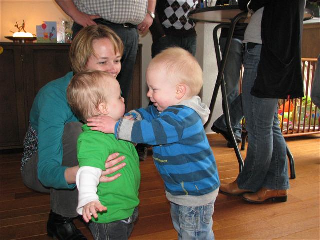Gisteren vierden we Lucas’ verjaardagsfeestje, ook met zijn vriendjes en vriendinnetjes Guus, Tijn, Stan en Marit. Het was een druk middagje met veel bezoek en kadootjes. De opa’s en oma’s waren woensdag al geweest, maar oma Carla kwam papa en mama even helpen met taart en koffie uitdelen. Ook Oom René en Tante Arianne kwamen langs en natuurlijk de buurtjes. Het was een gezellige middag.