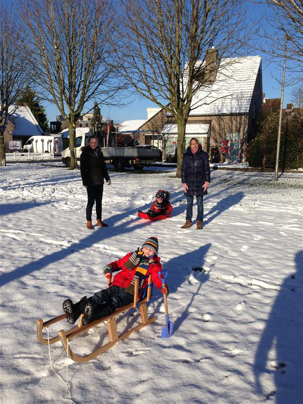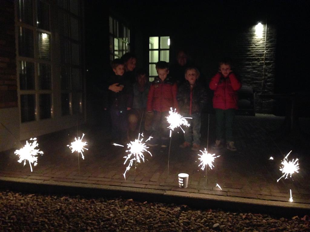 Inmiddels was het gaan sneeuwen in het land, maar helaas voor de jongens niet in Zuidzande. De volgende dag gingen we weer naar Maarheeze en konden we nog een hele middag genieten (samen met Ardy) van de sneeuw die gevallen was. En toen was het al weer oudejaarsdag en tijd voor oliebollen en vuurwerk. Oud en nieuw hebben we bij Jasper, Merijn, Mariska en Wim doorgebracht. We hadden met z’n alleen lekker gegeten en voor ’t naar bed gaan hebben we sterretjes afgestoken. Lucas kon helaas niet slapen van het vuurwerk dat in de verte al werd afgestoken, dus die bleef wakker tot het 12 uur geworden was. De andere kinderen hebben we vlak voor twaalven ook gewekt. Samen hebben we naar het vuurwerk gekeken dat ver weg in het dorp, of dichtbij door papa afgestoken werd.