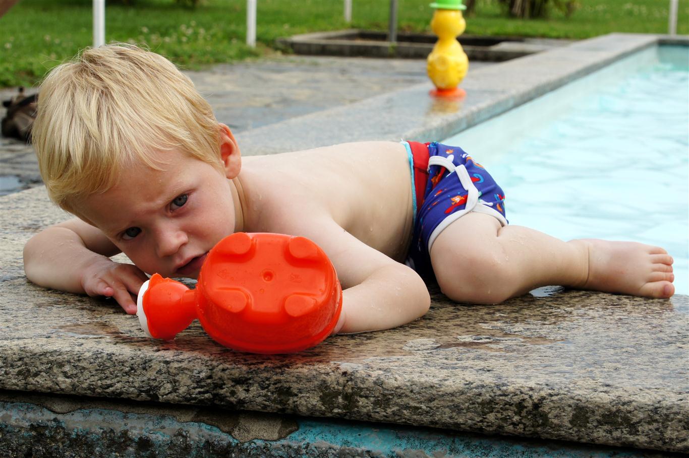Gisteren in het zwembad was Roan de hele tijd aan het zingen. “Lalalalaaaaa, lalalalaaaaa”. Heel grappig. We hebben nog tot half zeven in het zwembad gelegen, samen met Joost en zijn papa en mama. We hadden zelfs een drankje er bij aan de rand van het zwembad. Vandaag dus nog 1 keertje springen, spelen in de speeltuin en zwemmen in het zwembad. Afscheid nemen van Joost (en het speelgoed weer even uitsorteren, want we hebben over en weer wat uitgeleend) en vanavond pizza halen ter afsluiting van onze vakantie. Als de jongens in bed liggen gaan papa en mama alles weer in de auto proppen zodat we vannacht rond 4 uur kunnen vertrekken terug naar het regenachtige Nederland 🙂