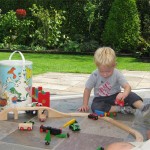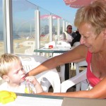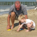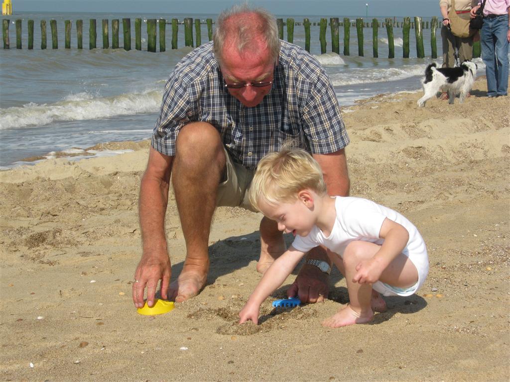Hij speelt en speelt en speelt. Binnen en buiten en weer terug. Auto’s, trein, Bumba, Bob de Bouwer, de speeltuin, uitstapjes op de fiets en met de auto. Hij vindt alles fijn. Het is heerlijk weer, dus gaan we op de fiets een middagje naar het strand. Heerlijk vindt hij het water, het zand, de schelpjes. De hondjes die met hun baasjes langs de vloedlijn lopen krijgen ook de aandacht van Roan. Op het strandpaviljoen van Carry en Rinus gaan we appelsap drinken en een ijsje eten. Opa neemt een biertje. De middag is zo voorbij en de drie nachtjes slapen ook.