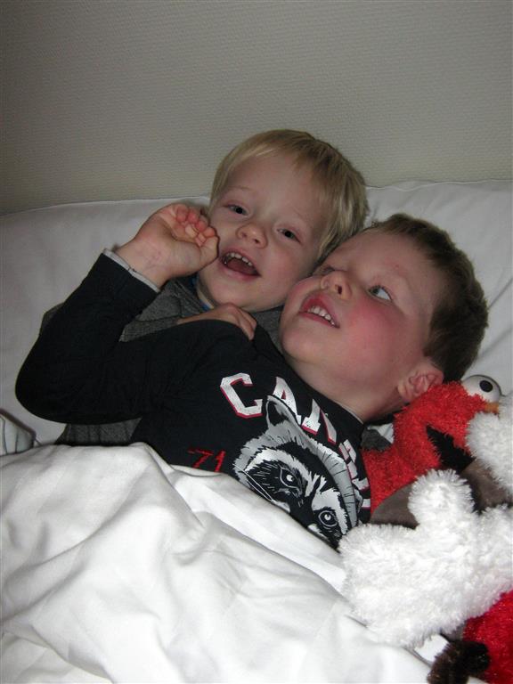 Roan slaapt de hele nacht. ’s Morgens, om o7.40 uur roept hij om Oma. Roan zit rechtop in z’n bedje. Eén speentje is uit z’n bed gevallen. Hij zegt “kan er niet bij”. Meteen veert hij op en zegt “uit”. Een lachend jongentje til ik op. Heerlijk!!! Hij wil “zelf”van de trap afkomen. Lucas is zijn grote voorbeeld daarin. Hij geniet van alle aandacht die hij krijgt. Wij genieten van de aandacht dat wij hem kunnen geven.
