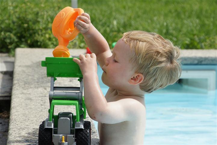 het springkussen! Iedere dag meerdere malen “pringen” zoals Lucas het zegt. Roan ging vaak mee op sleeptouw in de wandelwagen. Ook hij vond het leuk om zijn grote broer bezig te zien. Hij keek zijn ogen uit! Naast springen heeft Lucas nog lekker gespeeld in de speeltuin en samen met papa, mama en Roan gezwommen in het zwembad.