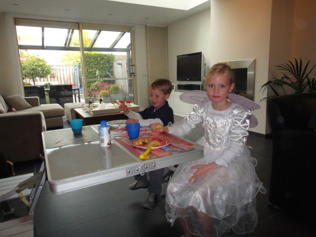 Vanmiddag zijn we op visite geweest bij Marit. Na de slaapjes, goed uitgerust die kant op gegaan. Lucas en Roan hadden er al een paar dagen naar uitgekeken. Want spelen bij Marit is altijd een feest en we gingen nog pannenkoeken eten ook. Lucas heeft er maar liefst 3 opgegeten! Lucas en Marit hebben veel samen gespeeld, ook op Marit’s kamer met allemaal interessant speelgoed en Marit had zelfs een radio en een discolamp op haar kamer. Roan heeft vanmiddag hoofdzakelijk met hondje Beau in de mand gelegen en met hem geknuffeld. Onze grote dierenvriend! Woef!