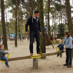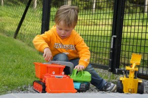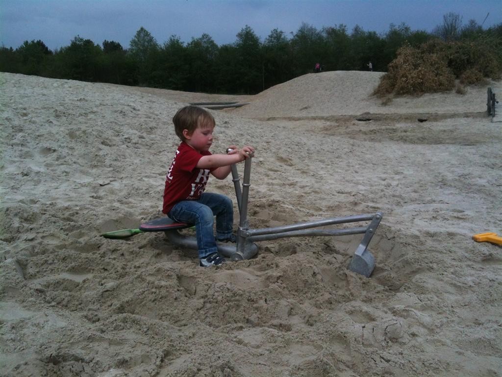 Na de lunch ging Roan zijn middagslaapje doen, en Lucas met Marit en de mama’s naar de Paalbergen. Een grote zandvlakte met graafmachines en waterspelletjes. Hier had Lucas vorig week ook al gespeeld en vond dit natuurlijk geweldig, want graafmachines is helemaal zijn ding. Het liefste wat hij thuis momenteel doet is op YouTube (op de PC of ipad) kijken naar filmpjes van graafmachines. Om het feest helemaal compleet te maken was er ook nog een springkussen bij de Paalbergen. Helemaal fantastisch! Ondertussen hadden papa Joost en papa Marc de zware taak om over Roan te waken…