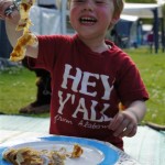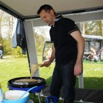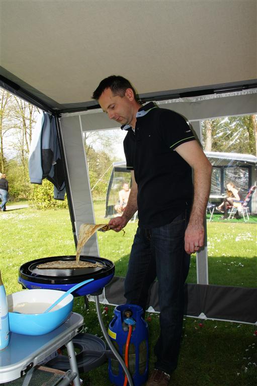 Ondertussen was het bijna etenstijd, dus hebben de papa’s pannenkoeken gebakken. Dat wil zeggen papa Marc maakte het beslag met klontjes en papa Joost was van het bakwerk. Iedereen heeft