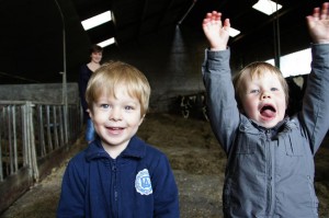 Gisteren zijn we ’s middags even wezen spelen bij Jasper en Merijn. Onze vriendjes wonen op een boerderij, met een grote stal met koeien en paarden in de wei. We mochten even kijken bij de diertjes. Dat vond Roan natuurlijk geweldig al die dieren, en Lucas kon lekker spelen met Jasper en de traktor! Het was een super leuk uitje!
