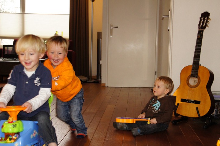 Vanmiddag kwam Marit op bezoek met papa Joost en mama Femke. Lucas keek al een paar dagen uit naar deze middag. Het eerste dat hij vanmorgen vroeg was “Is Marit er al?” Marit kwam bij ons lekker lunchen en we hadden dan ook harde broodjes uit de oven. Jammie! Eerst met z’n allen lekker geluncht en daarna kon het spelen beginnen. Als het speelgoed uit de kast en spelen maar. Lekker rennen, tekenen, muziek maken en nog veel meer. Lucas en Marit kunnen heel goed samen spelen! Ook Roan deed lekker mee, als is het voor Lucas vaak nog lastig om zijn broertje toe te laten. Maar dat komt vast wel goed, als we zien hoe goed het samen gaat met Marit. De papa’s en mama’s hebben lekker een beetje bijgekletst en de kindjes lekker gespeeld! Het was een gezellige middag!