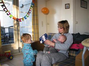 Gisteren vierden we Lucas’ 2e verjaardag. Wat was Lucas onder de indruk van de slingers en ballonnen in de woonkamer. Er lag een héél groot cadeautje in de woonkamer te wachten op Lucas. Een mooie Duplo trein! ’s Middags kwamen alle opa’s en oma’s, ome René en alle vriendjes en vriendinnetjes van Lucas met hun papa’s en mama’s. Even een opsomming: Marit, Julia, Jasper, Merijn, Tijn, Stan, Guus, Sjors, Ardy en Lydia. Zo veel cadeautjes had Lucas nog nooit gehad op 1 dag! Wat een feest.
