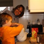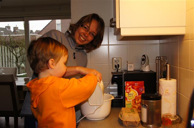 Vanmorgen hebben we een appeltaart gebakken, want Sander en Chantal komen vanmiddag op visite. Lucas helpt mee natuurlijk met alles klaarzetten. Mama schilt de appels, papa noemt op wat we moeten hebben en Lucas zegt waar het ligt. Eenmaal bij de boter (in de koelkast) zegt Lucas: “Da’s voor op mijn bult” … Waarop papa zegt: “Volgende keer appeltaart op je bult” … Lucas: “Neeee toch”. Vervolgens zegt Lucas: “Mama, appeltaart maken is toch ook koken? Mag ik dan op de iPad?” (Lucas mag ’s avonds altijd even op de iPad spelen als mama of papa kookt!). Wat een slimmerik!