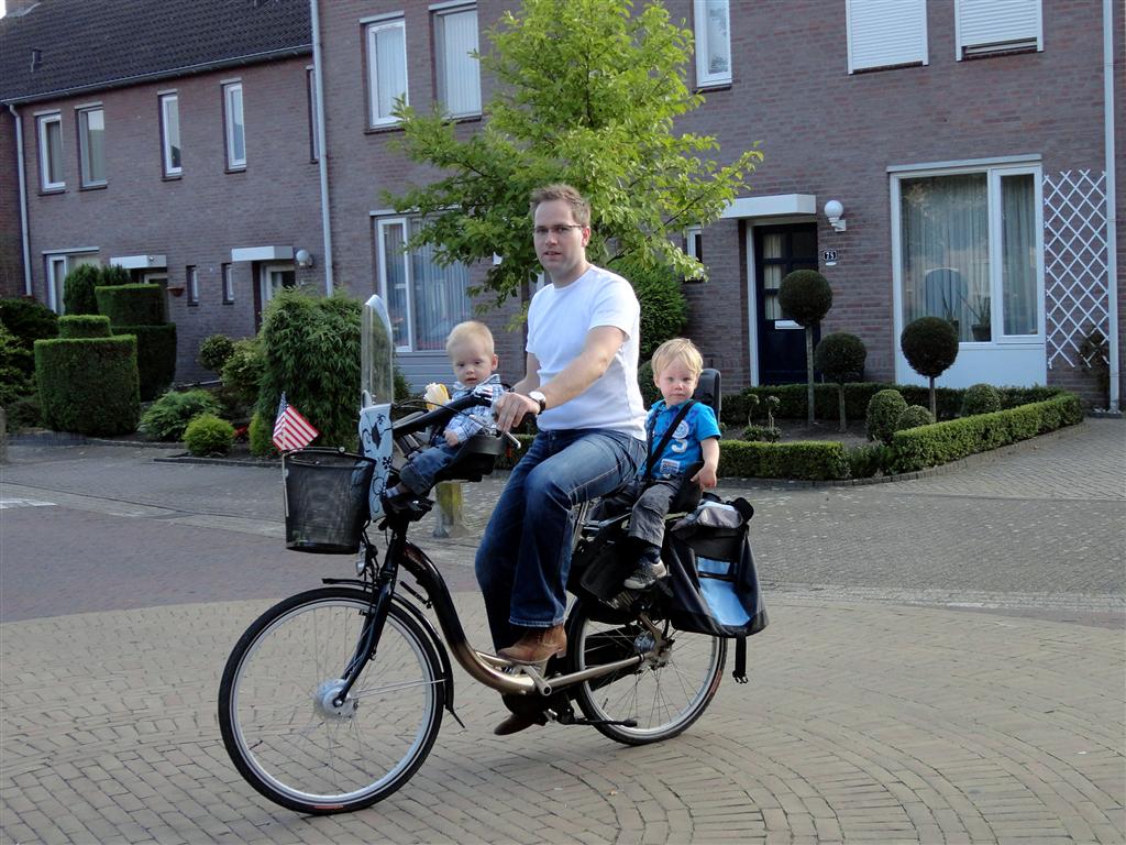 Na het werk probeert papa altijd nog even te gaan fietsen met Roan of Lucas, mits het weer dit toelaat en mits de jongentjes niet te moe zijn. De laatste weken is het er door het mindere weer niet echt van gekomen. Tot vandaag. Vandaag wilden ze allebei mee (Roan kan nog geen ‘nee’ zeggen) en was het ook nog mooi weer! Zelfs mama had nog even tijd om een foto te maken 🙂