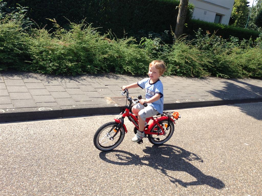 Het was weer even geleden dat papa een echte papa-dag had met allebei de jongens. Als cadeautje was het ook nog een heel mooi weer gisteren. ’s Morgens eerst Lucas naar school gebracht, met Roan op de fiets. Daarna met Roan Lucas zijn nieuwe fiets opgehaald bij oma en die alsnog naar school gebracht, zodat Lucas op de fiets terug naar huis kon. Lucas’ nieuwe fiets stond nog bij oma, omdat opa en oma heel veel geoefend hebben met Lucas op zijn nieuwe fiets. Toen we de fiets kochten was hij nog iets te groot voor Lucas, maar oefening baart kunst; en nu fietst Lucas er zo op weg!