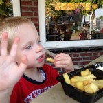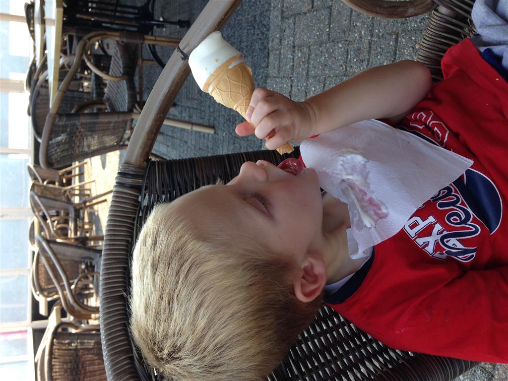 Na een ochtend op school hebben we met z’n drieën harde broodjes gegeten. Daarna was het tijd voor Roan zijn slaapje en heeft Lucas ook even op de bank gerust na een drukke schoolweek. Ook nog even ons nieuwe wii spel “Planes” uitgeprobeerd. Dat is echt heel leuk! Omdat Lucas de laatste weken zo goed zijn best gedaan heeft in heel veel dingen, gingen we ’s middag naar de speeltuin in Soerendonk. Lekker op de fiets! We begonnen met een ijsje (waarvan Roan eerst de koek opat…) en na lekker gespeeld te hebben sloten we de dag af met frietjes. Roan met “saus” (mayo) en Lucas zonder. ’s Avonds gingen papa en mama barbecueën en daar houden de jongens nog niet zo van, dus een goede reden voor friet bij de friettent!