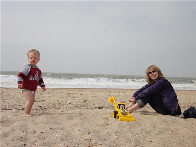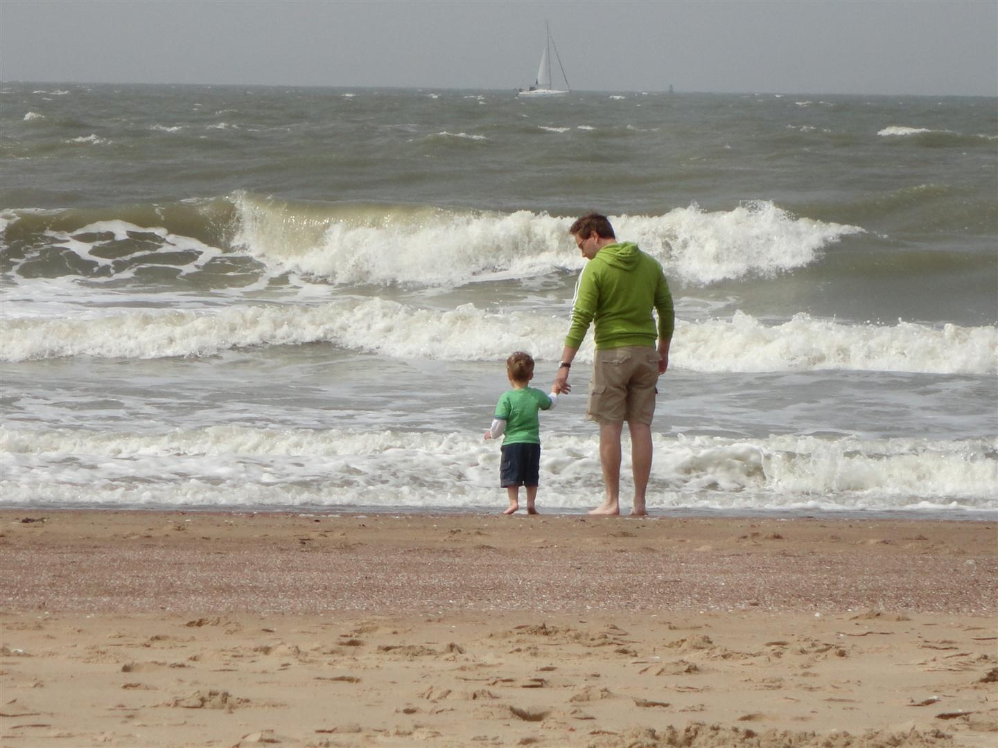 Lucas heeft het heel druk gehad met bezoekjes brengen aan iedereen. Hij is met papa naar Rody en Anne-Lies met hun kindjes Jasper (5 jaar), Jasmijn (3 jaar) en Joris (5 maanden) geweest. Verder is hij naar Opa-Opa in Breskens geweest. Dat vond Opa-Opa wel heel leuk. Ook Roan mocht mee met dit tripje. Ook is Lucas met papa en mama naar het strand geweest. Hij heeft de zee gezien en hele grote boten voorbij zien komen. Eigenlijk wilde Lucas wel met de boten spelen. Papa heeft toen toch maar uitgelegd dat die heeeeeel ver weg waren en heeeeeel groot zijn. Lucas vond dat je op het strand zonder schoenen en zonder broek moest lopen. Vandaar de blote beentjes. En verder moet je op het strand ook even op de palen lopen. Erg spannend allemaal!