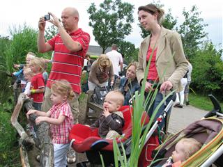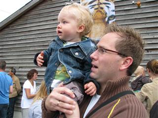 Vandaag zijn we met Jeroen, Angelique, Sofie en Tim naar Dierenrijk in Nuenen geweest. Eerst lekker geluncht bij Jeroen en Angelique in Veldhoven, en daarna kozen we het ruime sop naar Dierenrijk. Daar kwam namelijk Piet Piraat optreden voor alle kinderen. Ik gok 2 kilometer voor de parkeerplaats stonden de auto’s al geparkeerd… dus het was al gezellig druk daar… Lucas kent Piet Piraat al een beetje van de TV en hij vond de muziek zo leuk dat hij lekker heeft staan swingen met mama. Ook Sofie en Tim vonden het erg leuk. We waren wat aan de late kant en Piet Piraat wordt per minuut betaald, dus we hebben hem 10 minuten aan het “werk” gezien en daarna voer hij uit met zijn schuit… (dikke Audi met Belgische nummerplaat) …op naar een nieuwe snabbel avontuur. Hierna zijn we nog lekker met z’n allen door het park gewandeld en hebben weer heel wat dieren gezien. Een leuke plek in de buurt voor een middagje uit!