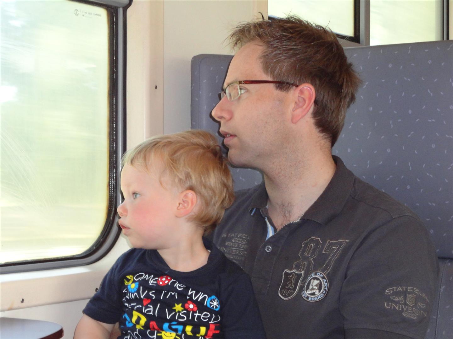 Al heel vaak is Lucas bij de spoorwegovergang wezen kijken naar de voorbij razende treinen. Ook is hij al een paar keer op station Maarheeze geweest, waar de trein ook echt stopt. Maar nog nooit was Lucas in de trein gestapt! Vandaag was het zover. We gingen met de hele familie met de trein een ijsje eten in Weert. Wat een feest! Lucas was helemaal beduusd toen hij eenmaal in de trein zat. Maar ging helemaal los toen we eenmaal op station Weert aankwamen.