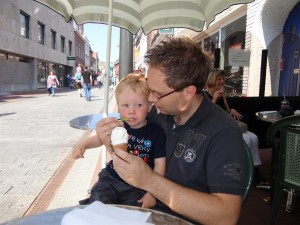 In Weert zijn we eerst een ijsje wezen eten op een terrasje. En Lucas is dol op ijsjes! Vlak daarna kwam er een echt draaiorgel aanrijden. En wie Lucas een beetje kent, weet dat dan direct de voetjes van de vloer gaan. Zie hier het resultaat.