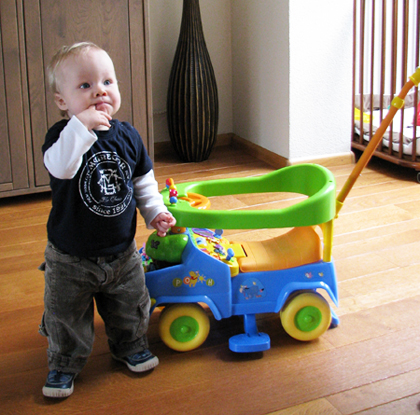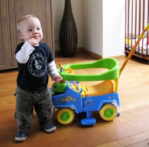 Sinds vandaag kan Lucas los staan! Zelfs een paar stapjes gezet helemaal alleen! Na een paar pogingen toch gelukt om er een foto van te maken 🙂