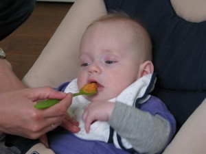Roan heeft gister voor het eerst wortel gegeten. Het was even wennen, maar uiteindelijk is het hele bakje leeg gegaan. Een welkome aanvulling op mama’s melk!