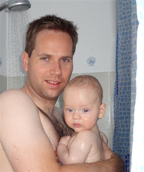 Roan past niet meer in zijn badje, dus dan maar onder de douche! Gisteren met papa samen onder douche geweest. Roan vond het prima. De spetters in zijn gezicht waren geen probleem. Dat is met Lucas wel anders, want die schreeuwt moord en brand. Misschien komt dat bij Roan nog, maar hopelijk niet natuurlijk.