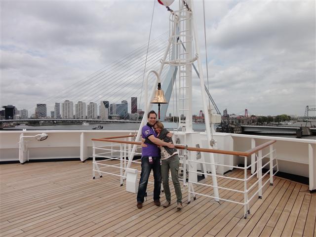 Dit weekend gingen papa en mama op bezoek bij papa’s goede vriend Eric in Rotterdam. Omdat dit wel een heel bijzonder bezoek was, aan boord van een cruise schip, hebben we er een kort weekendje uit van gemaakt. Daarom zijn Lucas en Roan een nachtje bij opa Ries en oma Carla wezen logeren. Gelukkig voor iedereen sliepen de jongens heel goed door vannacht. Alleen mama was snot verkouden geworden en sliep dus heel slecht, ondanks de super bedden in het hotel.