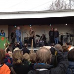 Eenmaal in de dierentuin had Lucas al snel meer oog voor de speeltuinen, en Roan vond de dieren erg leuk. Dierenrijk is inmiddels een echte dierentuin geworden met olifanten, beren, ijsberen, tijgers, roofvogels, roggen en nog veel meer dieren. Deze zomer komt er ook een leeuw bij. Reden om nog eens terug te gaan. Toevallig was vandaag ook VOF de Kunst in de dierentuin, voor de presentatie van hun nieuwe kinderboek en CD. Dit werd uitgereikt door Paul van Loon. Opeens dus zomaar twee grote jeugdhelden voor ons. Omdat we graag VOF de Kunst hadden zien spelen, zijn we frietjes blijven eten in de dierentuin. Dat was wel heel leuk en lekker. Maar helaas, na nog een uur gewacht te hebben had de band technische problemen en konden ze nog niet beginnen. Inmiddels lag Roan in mama’s armen te slapen en ook Lucas’ oogjes vielen dicht. Dan toch maar de CD gekocht en in de auto geluisterd. Leuke liedjes! Dan maar een ander keertje naar een optreden van VOF de Kunst!